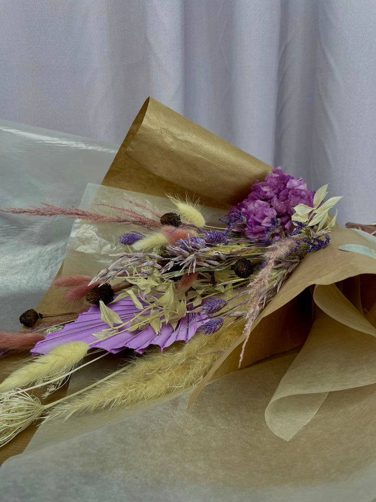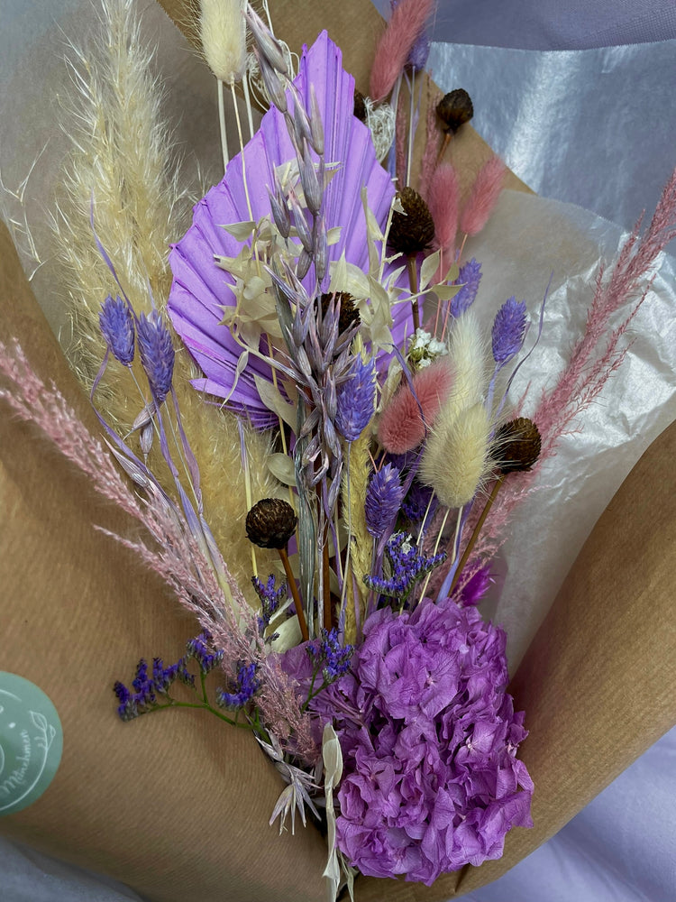 Trockenblumenstrauß mit Papiermanschette