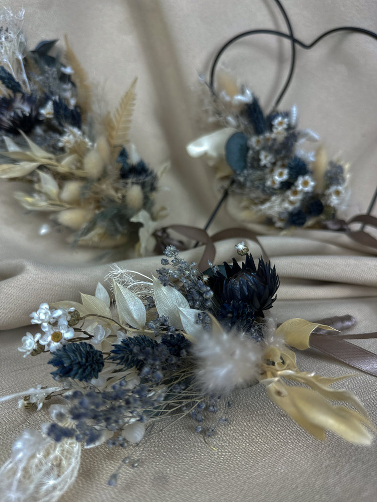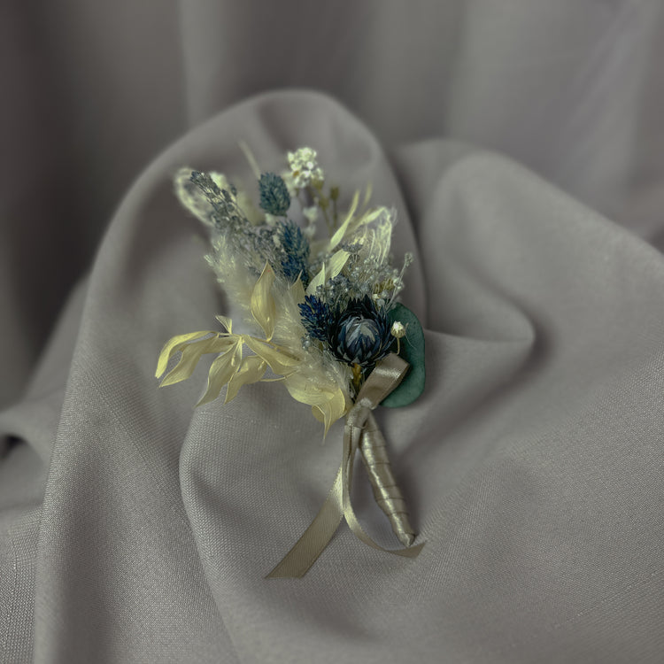 Moderner Outfit Anstecker mit gebundener Trockenfloristik & Sicherheitsnadel